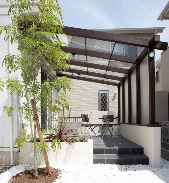 両側面にパネルがなく、開放感のあるテラスタイプ