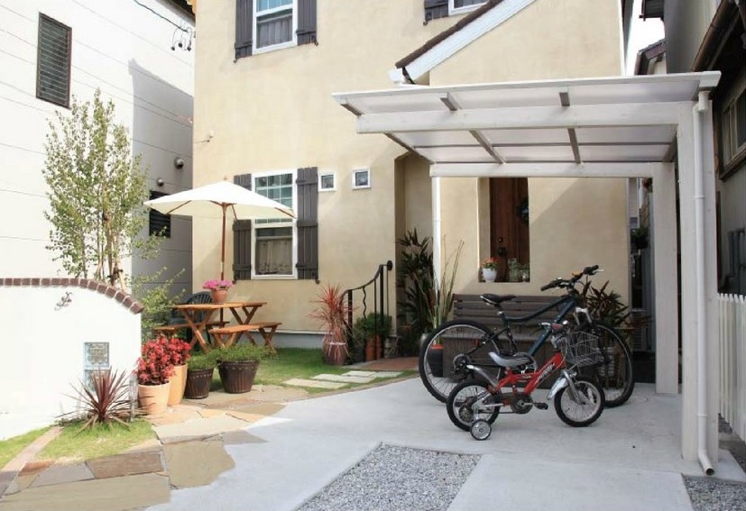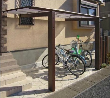 木目の風合いがあたたかい印象を与える駐輪場