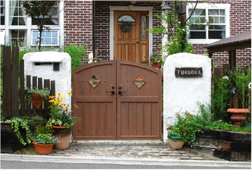 [ディーズゲート ファーム門扉1型] 可愛いデザインならおまかせのディーズガーデンから、ナチュラルなデザインにピッタリの木調門扉。 カントリーテイストを盛り上げてくれるマストアイテム。 見た目も質感も天然木を思わせるこだわりのつくりですが、FRP(繊維強化プラスチック)なので腐りません。