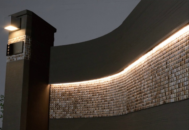 門塀やアプローチを間接照明によって美しく彩ります。