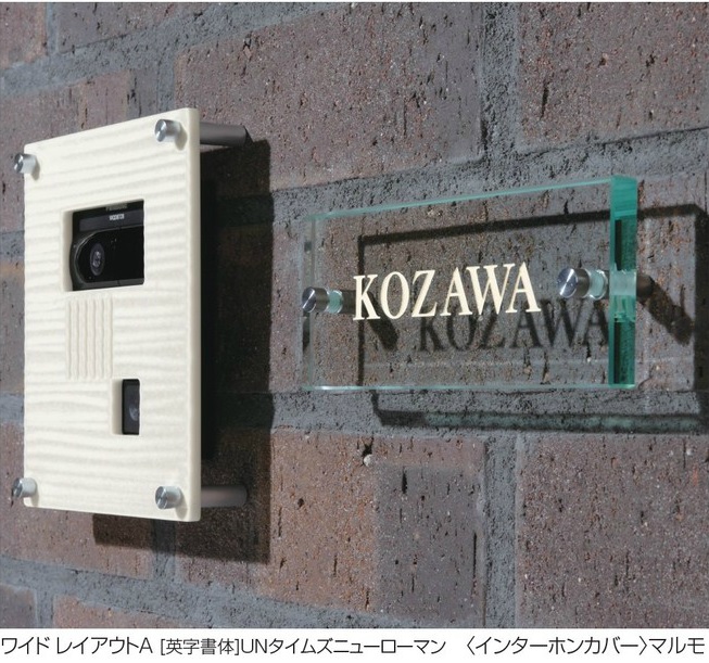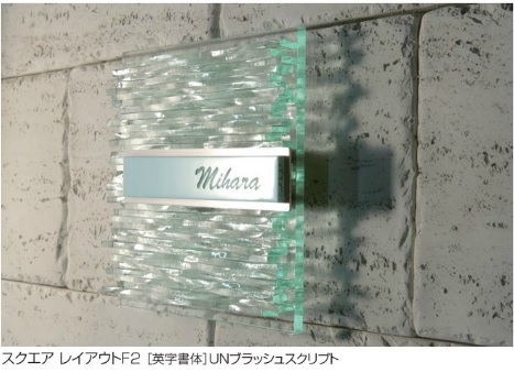 立体感のあるタイルとフュージングガラスを組み合わせたスタイリッシュでモダンなデザインのサイン。