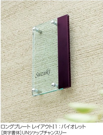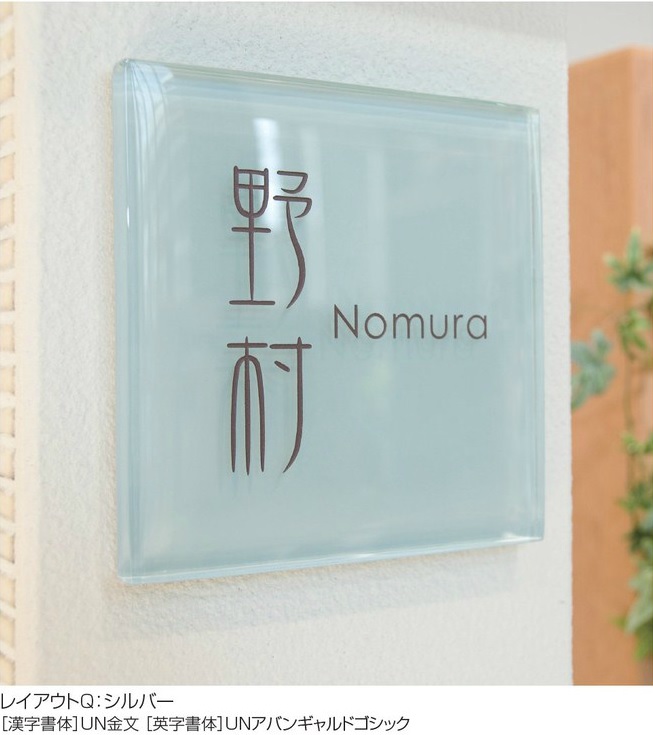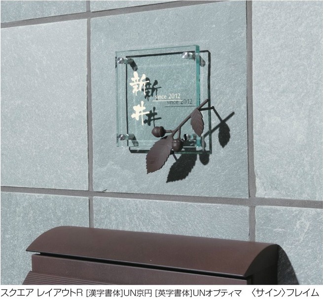 ガラス素材の凛とした佇まいに上品な色合いがシンプルでありながら、存在感を見せるサイン。