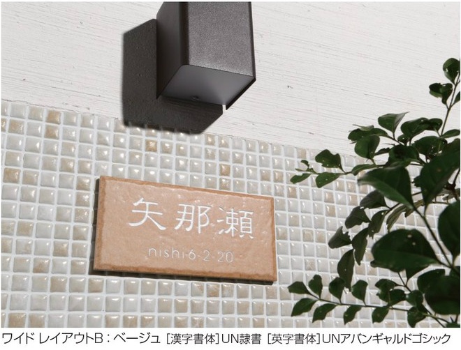 タイル色と書体の組み合わせを自由に選べるので、エントランスにさりげなく個性が光ります。