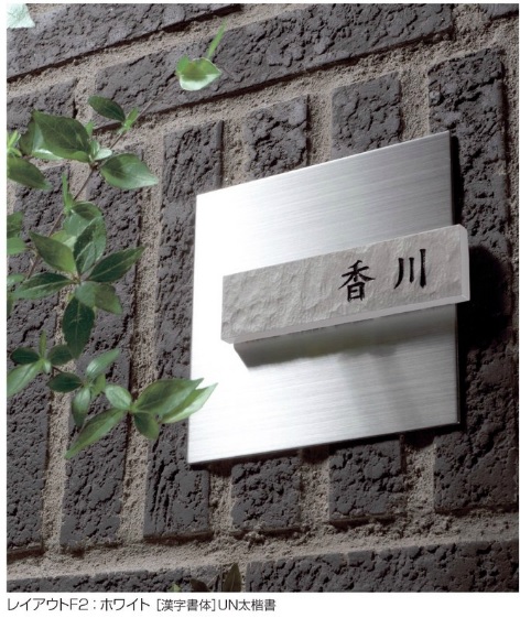 壁面に表札本体のステンレスとタイル色がバランスの良い配色となり、落ち着きが感じられる空間づくりをお楽しみ下さい。