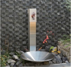 ステンレスの輝きと落ち着いたカラーがガーデンに映えるウォータースタンド。