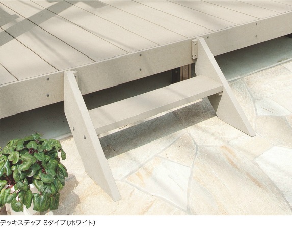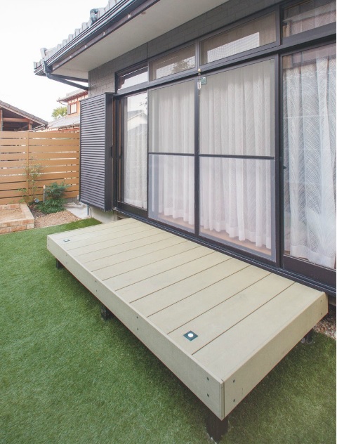庭へ降りやすくするには、お揃いのカラーでデッキステップを。
