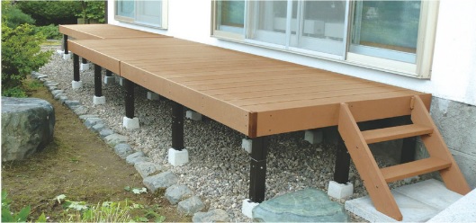 リサイクル素材を利用した、環境にやさしい人工木材のデッキとステップです。