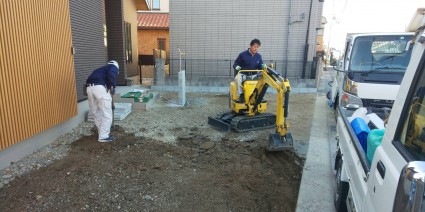 今回の現場は塀の外が溝になっていて、水が流れています。