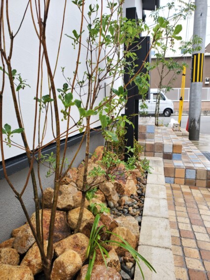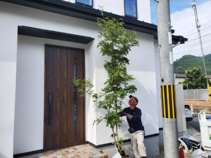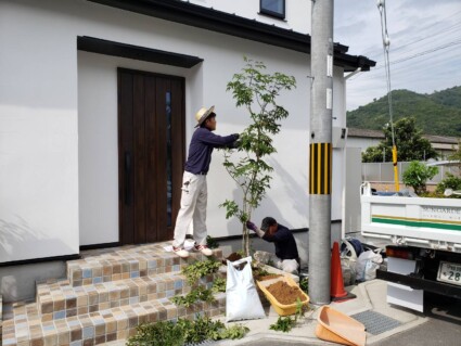 姫路市の新築外構が終わり、サンガーデンが植栽することになりました。