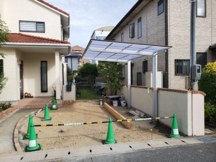 掘削工事が終わりカーポートも取り付けて駐車場らしくなってきました。
