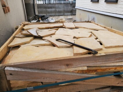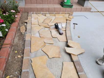 姫路市の外構・庭の自然石の石貼りアプローチリフォーム工事