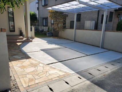 駐車場をコンクリート仕上げにして石貼りのアプローチで外構リフォーム
