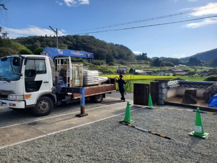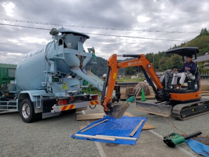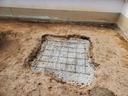 基礎工事も終わり次回は十三層塔の設置や草が生えないように防草シートの敷設など庭のリフォームの続きの工事を行います。