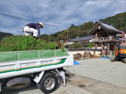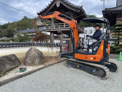 佐用町のお寺の庭を草の生えない石庭へリフォーム工事