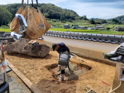 石の顔を見ながら丁寧に据え付けして空間を整えていきます。