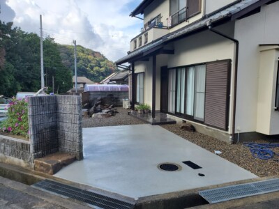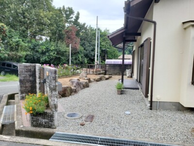 姫路市の庭石を再利用した駐車場とお庭のリフォーム工事
