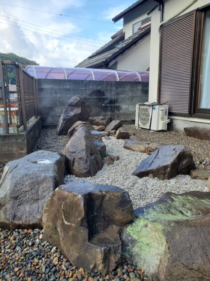 当初は庭石を処分することを検討されていましたが、再利用することで処分費が不要になり、その分庭のリフォームに予算を使うことができます。