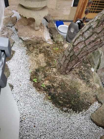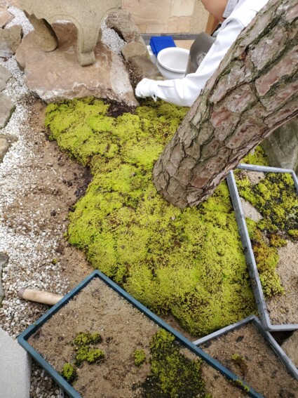 建物の塗装工事で足場があったり踏圧によりスナゴケがダメになっていました。