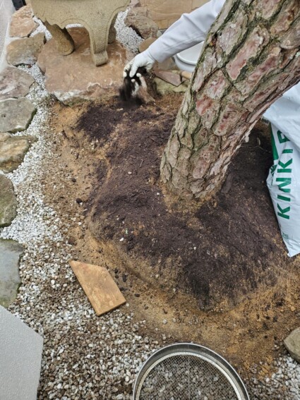 築山に起伏をつけながら整地をしてスナゴケの下地を作ります。