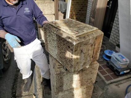 HOMEサンガーデンブログ > 姫路市の大谷石 崩壊寸前で危険なブロック塀をやり替える