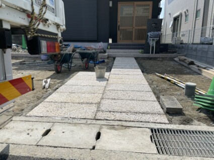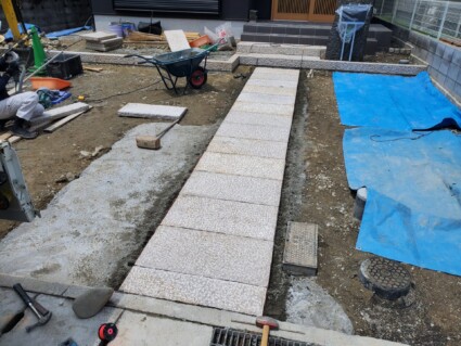 姫路市の和風モダン外構の工事中の様子です。