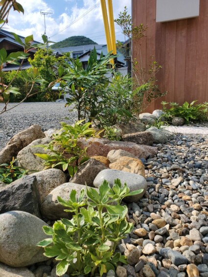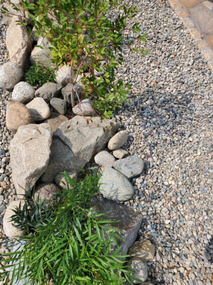 外周と同じやわらかさのある砂利敷きで統一感を出しました。