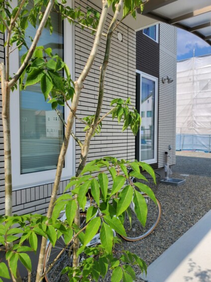 ほんの少しだけでもグリーンが入ることで外構が見違えることがあります。