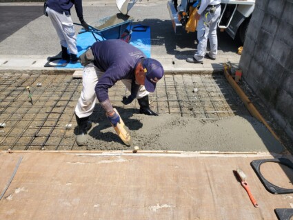 コテ仕上げとは左官鏝で平らにならしていくので土間コンクリートの表面はツルっとしています。