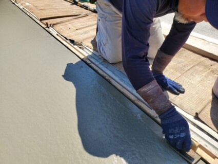 そこで表面に刷毛の模様を入れることでコテ押さえよりも滑りにくい仕上げとなります。