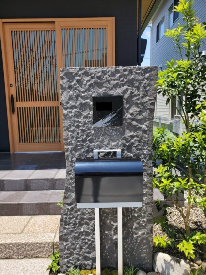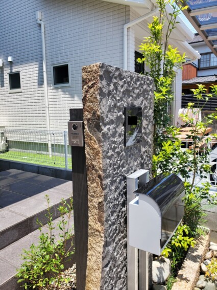 石門柱なのでその外観のデザインを損ないたくなかったのでインターホンは見えないところに設置しました。