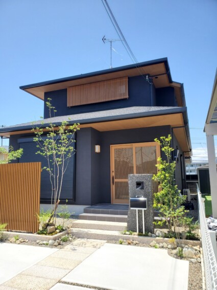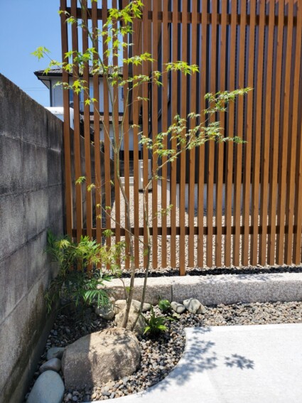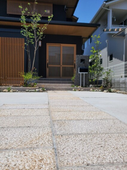 すっきりとした印象のモダンな和風外構は末永く愛されるデザインで設計をさせていただきました。