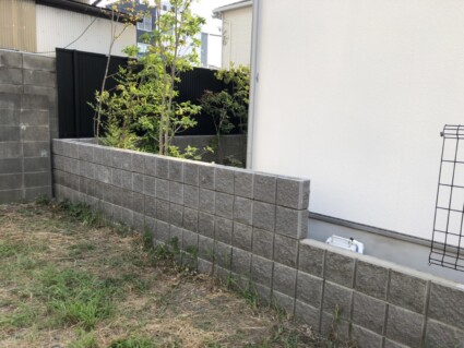 ブロックを追加2段積んで南面と同じフェンスを取り付けました。