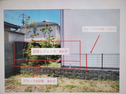 庭の一部がメッシュフェンスになっているので目隠しフェンスにやり替える工事になりました。