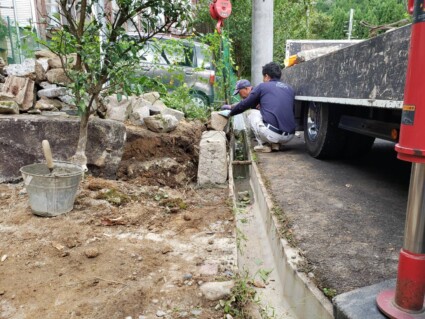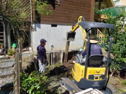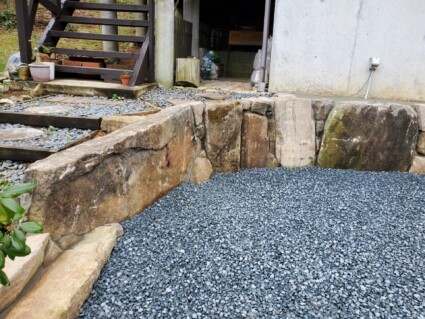 市川町の朽ちた枕木から丈夫な石積に庭のリフォーム