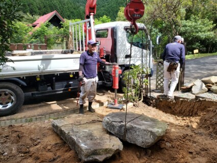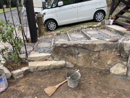 今回は大きめの石を使用し、崩れ石積をしていきます。