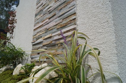 ナチュラルクォーツの表面は凹凸があるので、立体感が生まれます。道行く人の目を引くファサードになりました!