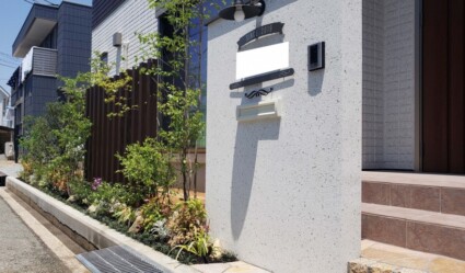 お部屋の中からも、そして外からも植栽を愛でることができるフロントガーデンに仕上がりました。植栽を配置することによって、道路からの視線を遮ることができます。