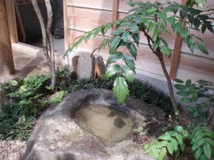 お庭の統一感を崩さないように、ご主人様と一緒に探し回ったこだわりの水鉢です。