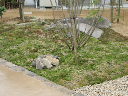 石と苔を自然な形で配置することによって、落ち着きのある、心和む空間になりました。