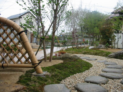 住友林業の日本建築住宅に、現代風の思考を組合わせたジャパネスクモダンなお庭です。