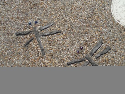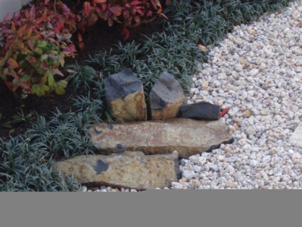 こちらは、「お客様のお庭に幸せが舞い込んでくろように」と、洗い出し部分に埋め込まれた「幸せのトンボ」です。