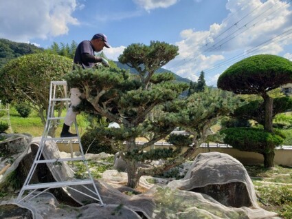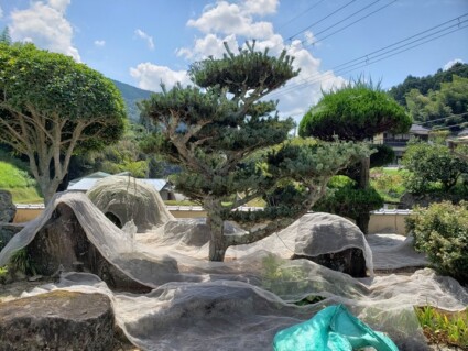 スイリュウヒバとモミジは、枝葉の量を減らして自然な仕上がりにしてあります。