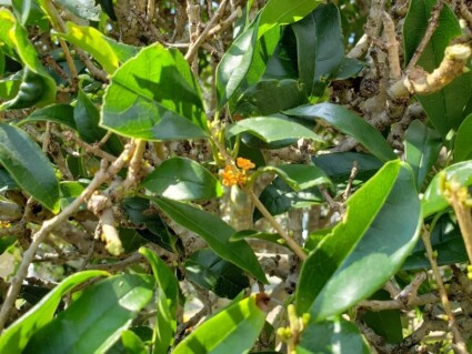 9月の中旬だったので、キンモクセイの花が咲き始めていました。花は枝の真ん中あたりについています。