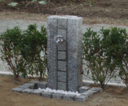 サイドに配置したノベ石と、その間にピンコロ石を挟むように積み上げた、サンガーデンオリジナルのモダンスタイルの立水栓です。唯一無二の、他にはない個性を出します。