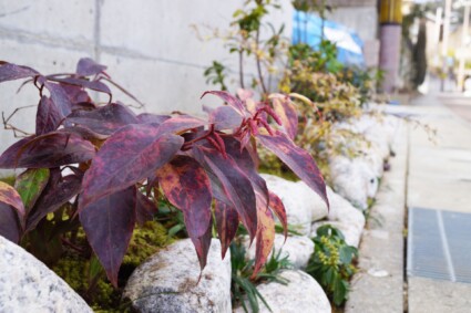 マホニアコンフーサは寒さに強く、日当たりの強いところでもよく育つ、比較的生育の良い植物です。植栽は日々成長をしていくので、その過程も見越しながら仕上げています。