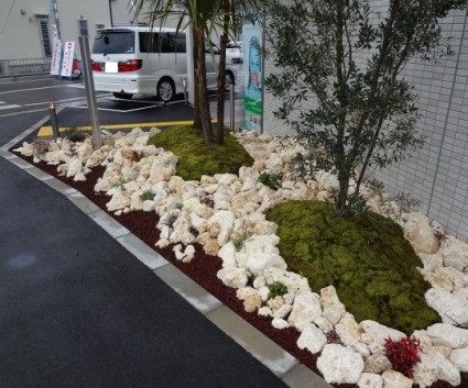 白い沖縄琉球石を使用して、リゾートモダンなロックガーデンが完成しました!