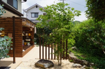 目隠しフェンスは、少し隙間をあけることによって閉鎖的にならず、風通しもよくなり、来客時には人の気配を感じることができます。