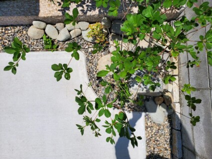 フェンスだけでは味気ないものになってしまいますが、緑を絡めることで雰囲気が変わります。