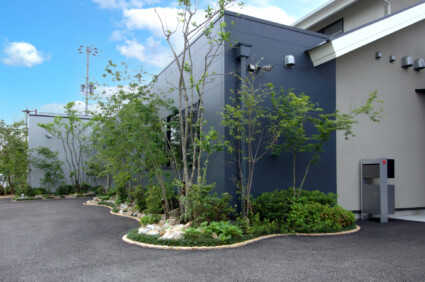 高さの違う植木を組み合わせて樹木をより自然に感じられるように配置しています。