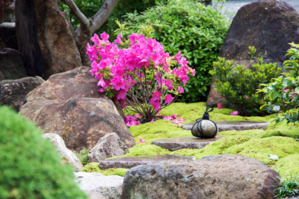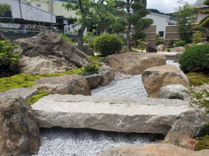 姫路市の外構・庭の自然石の石貼りアプローチリフォーム工事